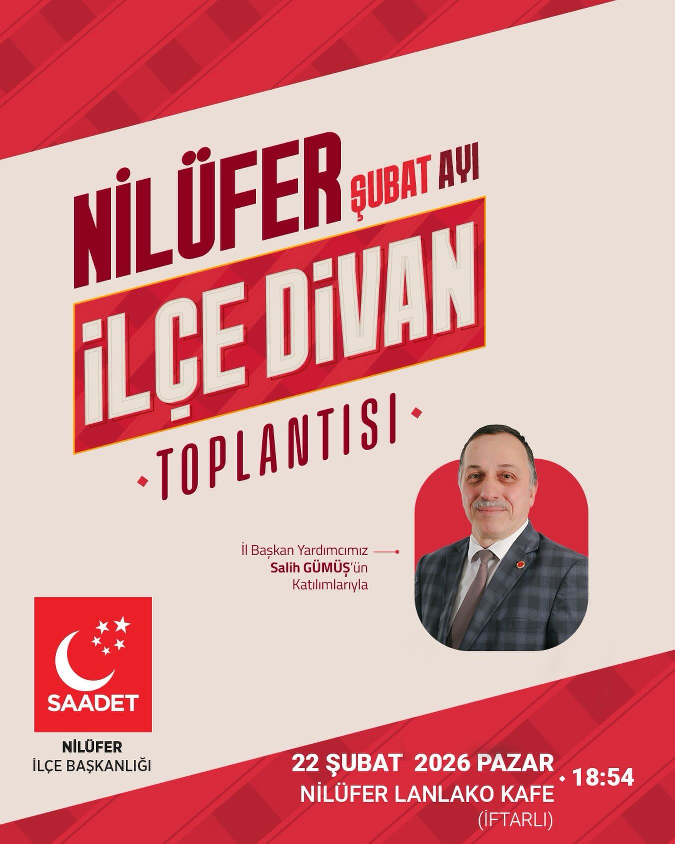 1 min read Genel Şubat Ayı İlçe Divan Toplantısı Şubat Ayı İlçe Divan Toplantısı 🗓️22 Şubat Pazar ⏰18:54 📍Nilüfer Lanlako Kafe Programımız İftarlıdır.